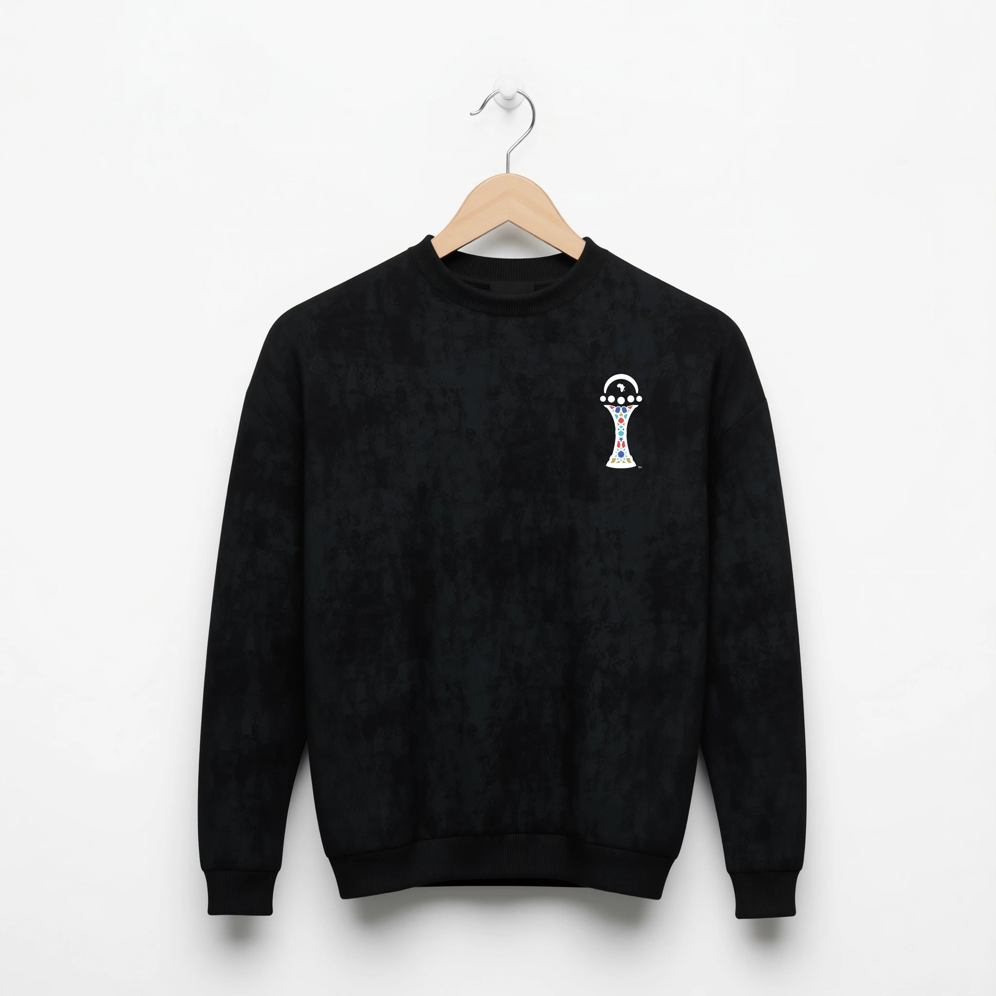 A fashion‑forward black tie‑dye sweater that brings vibrant style into AFCON support. Works for casual outings, match viewing, or streetwear, with AFCON 25 identity merged into a bold modern pattern.